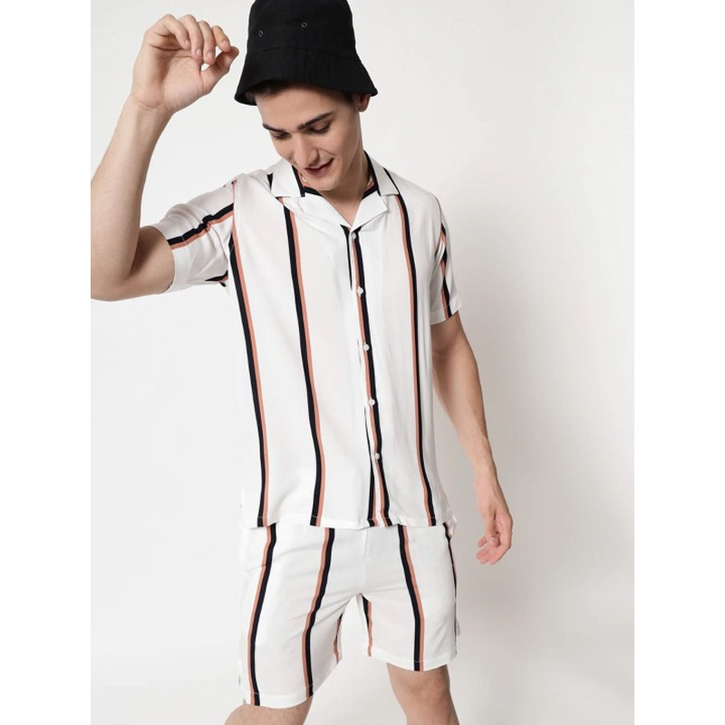 Unwind yourself in the vibrancy of this ultra-soft night suit. It is just what your body would need to unfurl in after a hard day's toil. Shirt Features Shirt collar Short sleeves Shorts Features Slip-on Size & Fit The model (height 6') is wearing a size M Material & Care Viscose rayon Dry clean